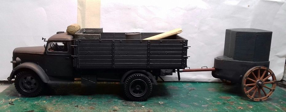 Un petit montage de cet ensemble . Un camion Opel de chez Heller et une cloche blindée de chez RPM .